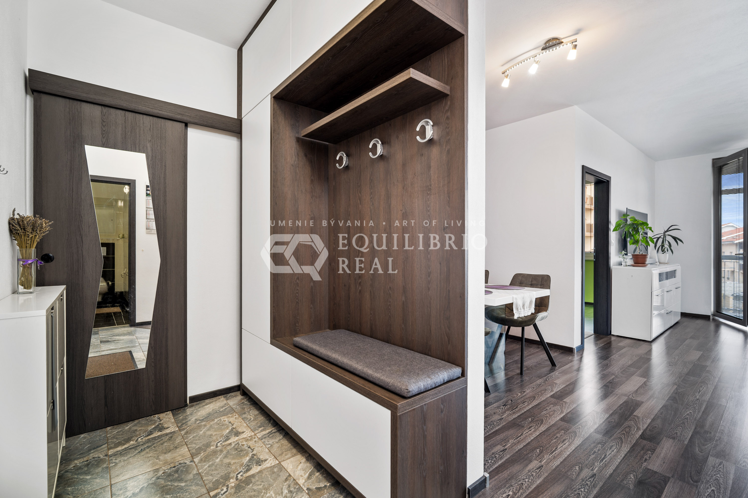 - Pri vstupe do bytu sa nachádza veľký vstavaný šatník, ktorý poskytuje praktický úložný priestor