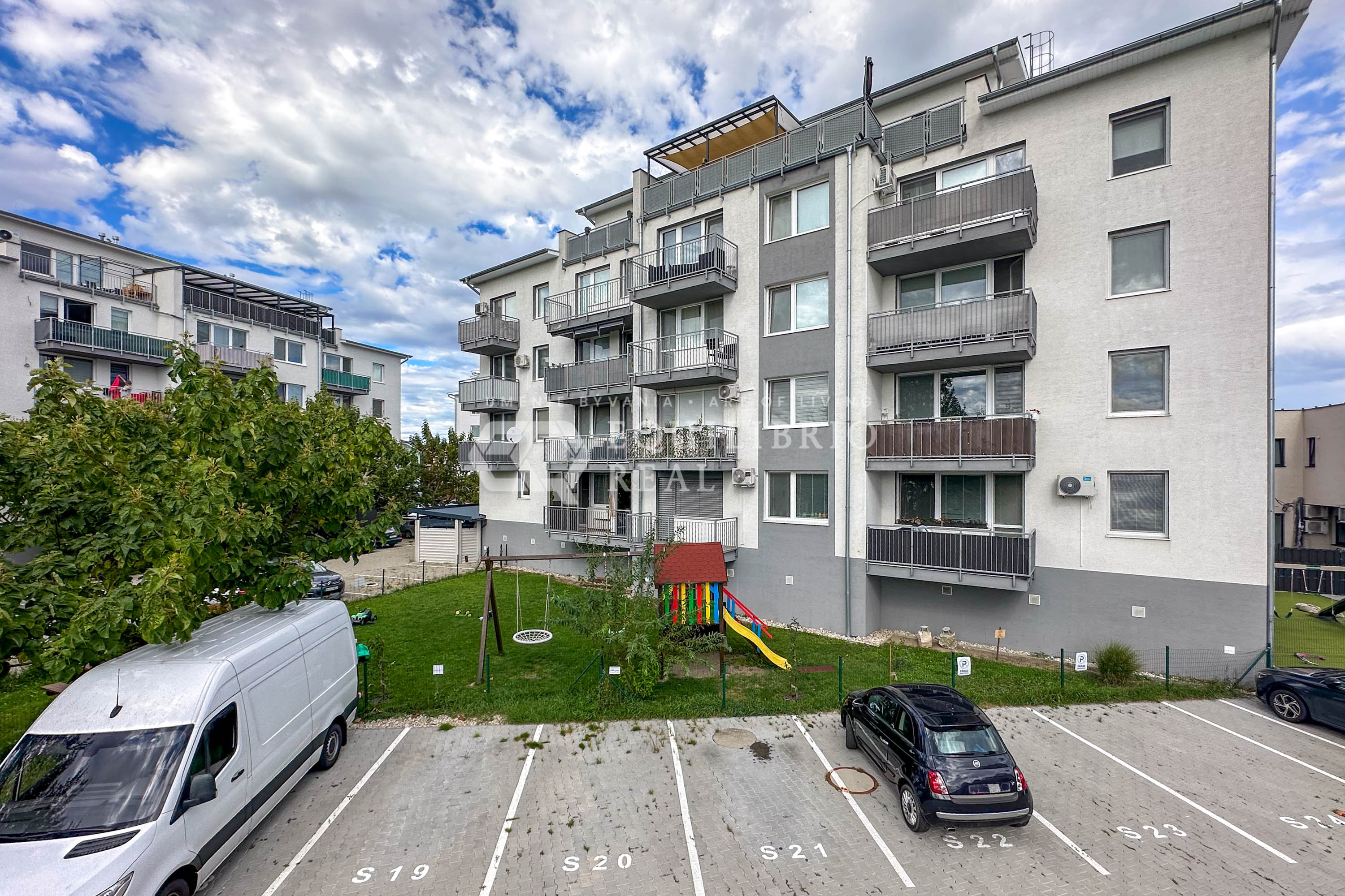 K bytu patrí priestranný balkón, vlastné vonkajšie parkovacie miesto a žalúzie na všetkých oknách. V obývačke sú navyše vonkajšie elektrické žalúzie, ktoré zvyšujú komfort a energetickú efektivitu.